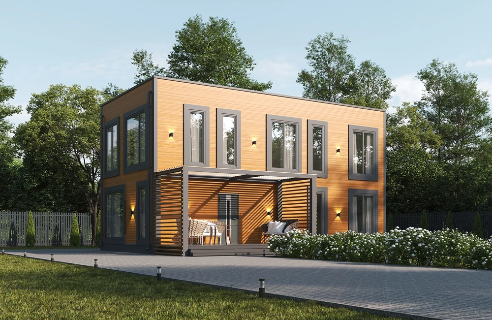 Двухэтажный дом площадью 148 квадратных метров с перголой - это прекрасный выбор для семьи, ценящей комфорт и функциональность. Дизайн этого дома отличается элегантностью и практичностью, что делает его идеальным местом для жизни и отдыха.